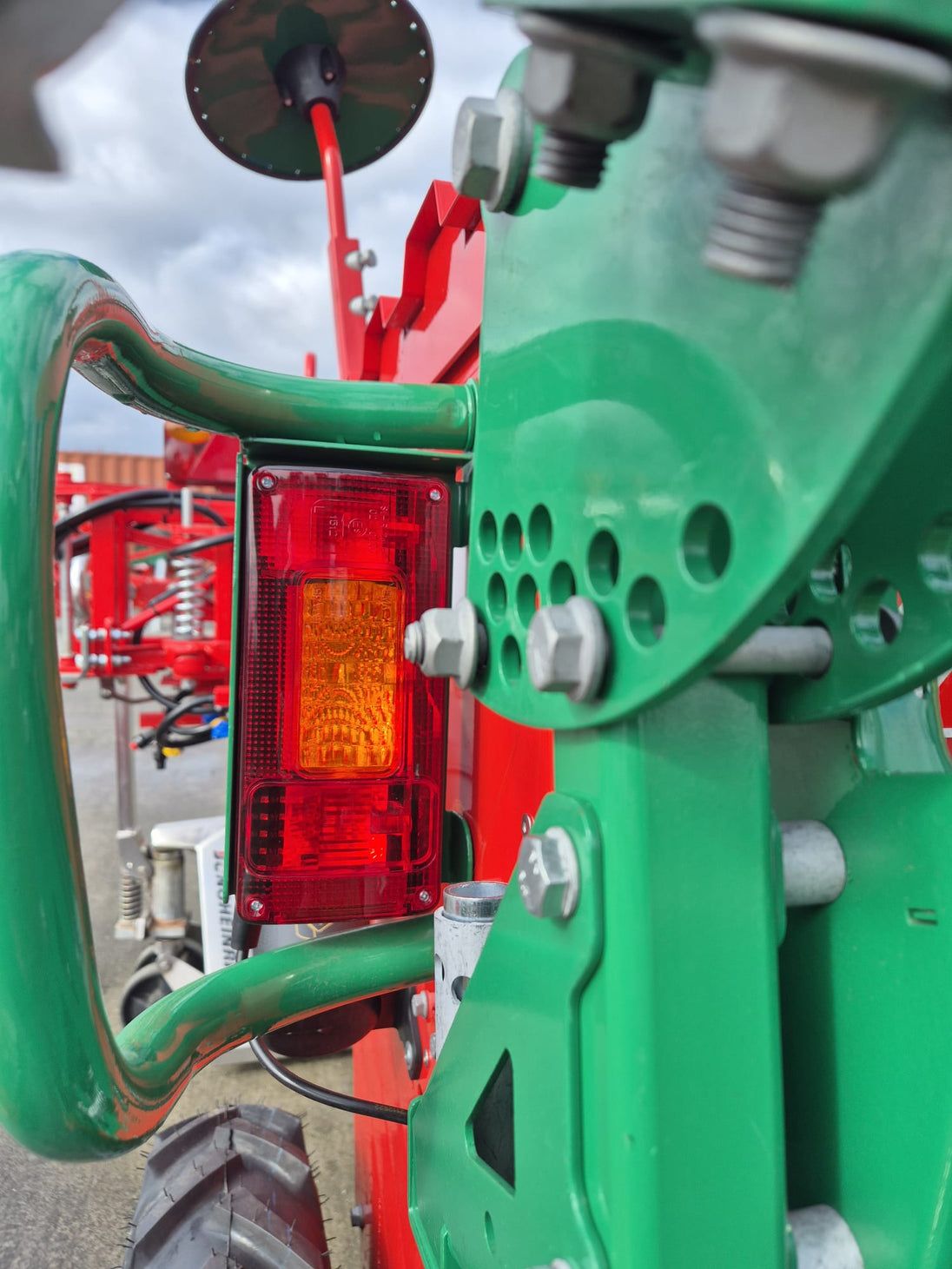 Lampă spate universală dreptunghiulară pentru montare pe partea stângă, compatibilă cu tractoare, remorci, camioane și vehicule de construcții. Echipată cu tehnologie halogen și multiple funcții de iluminare pentru siguranță maximă în trafic.